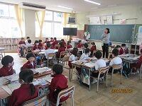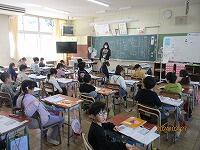 3年生の外国語では、歌に合わせて体を動かしていました。曲がだんだん早くなって合わせるのが難しそうでしたが、みんなよく聞き取って曲に合うように表現していました。