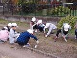 1年生、花壇の草むしり。