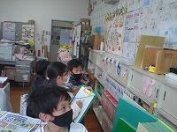 2組は、教科書の絵と学校の図書室を比べて、同じところや違うところを見つけていました。