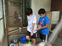 飼育小屋では、飼育委員が「チョコ」と「大福」の世話を、一生懸命していました。