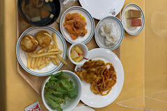 夕食です。マスクと手袋をしてバイキングです。配膳はホテルの人がしてくれます。