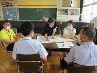 重点目標を達成するために、活発な話合いが行われました。それぞれの先生方が、タブレットを用いて、今までの取り組みを共有したり、話し合ったことを発表したりしました。GIGAスクールへの対応も、小中連携して進めています。