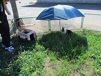 飼育委員会担当の先生が、2学期から、アスレチック広場の草をウサギが食べられるように、サークルを設置し、移動させるためのかごも2つ用意してくれました。