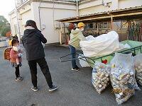 ボランティア委員会の児童が、協力してアルミ缶を集め、アルミ缶置き場まで持っていきました。