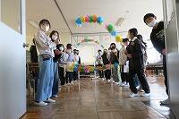 お見送りの時は、別れを惜しんで涙している子どもたちも。たくさんお世話になった6年生とのお別れは寂しいけれど、感謝の気持ちをたくさん伝えることができましたね。