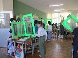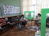 自分たちでパーティーションをとりつけて、グループ学習ができるように準備しています。スムーズに準備ができました。