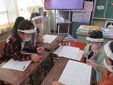 次は、フェイスシールドをして、グループごとに計算の仕方を話し合っています。