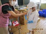 配るのは少ない人数で、手袋をして、先生と配っています。また、配膳の場所も、密にならないように特別教室を使用するなどしています。