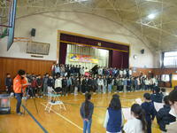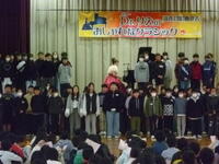 5,6年生の発表で歌われた「歌声ひびかせて」は、三小の子どもたちの声を聴き、先生が作曲してくださった発声練習の曲です。