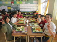 授業後には、6年生と一緒に給食を食べ、楽しい交流ができました。
