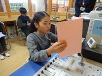 2年生では、図工の「まどのあるたてもの」でカッターナイフを使います。図工で使うのは初めてなので、動画などを使いながら安全な使い方の基本を学びました。今日は練習用紙を切る活動でしたが、保護者の方も近くでサポートしていただけたので安全・安心な活動となりました。