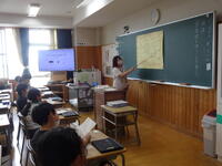 授業研究会は、先生たちの学びの場でした。体育と国語のグループに分かれて、子どもたちの姿を中心に指導方法の効果を話し合いました。市教委の先生方からも指導助言をいただき、教職員の深い学びとなりました。