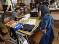 昨日の放課後、市教委の担当者の指導の下、全教職員で不具合が生じているタブレット端末の修復作業を行いました。