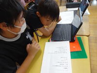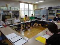 放課後には、先生たちが学校課題について話し合いました。今年度は、子どもたちに思考力を高めるための授業の工夫を研究してきました。それぞれの学級での授業の取組を話し合い、タブレットやワークシートの活用や学習形態の工夫など、どのような方法が効果的だったかグループで熱心に話し合いました。