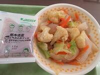 )いちごジャム・野菜豆腐ナゲット・こんにゃくサラダ・白菜のクリームスープ