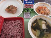 ふりかけには小松菜・じゃこ・かつおぶしが入っています。スポーツマンにとって重要な栄養素であるカルシウム・鉄が豊富です。また、筋肉のもとになるたんぱく質が豊富な献立にしました。給食室からも「フレー!フレー!」とみんなで応援していました!