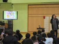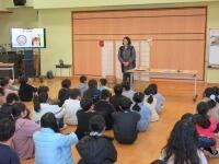 「骨が伸びるためには今がチャンス、小学生のうちからカルシウムをとって、強い骨を作ろう。特にゴールデンウィークは給食がないので、牛乳などの乳製品や小魚、豆製品など食べるようにしてください」という言葉に、深くうなずいて聴いていました。