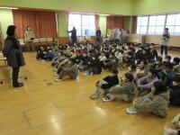 4時間目に4年生のみなさんが日惜ホールに集合し、本校の卒業生