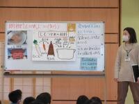 次に、栄養教諭の先生から、給食の献立が主食、主菜、副菜などが組み合わされ、それぞれに働きがあることを知りました。