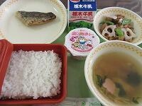 5月1日の給食は、ごはん、牛乳、白身魚のまっちゃソースがけ、ブロッコリーサラダ、豆腐と油揚げのおみそしるでした。