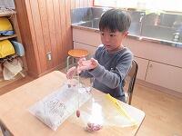 全員の準備ができたところで姿勢よく「いただきます。」の挨拶をしました。牛乳パックにストローを差し込むことも慣れてきました。「小学校の給食はおいしいですか。」と尋ねると、みんな「おいしい。」という感想を返してくれました。