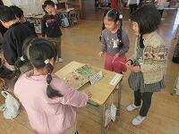 学級ごとに交流し、2年生は1年生の作ったおもちゃで楽しく遊びました。遊び方や感想をを伝え合う活動を通して、コミュニケーションが深まりました。
