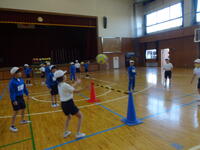 体育館では、ボールを使った様々な動きを練習し、プレルボールに挑戦しています。ボールをはずませたりキャッチしたりする動きに取り組んでいます。