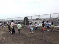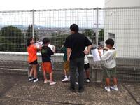 屋上からの景色を見て「家がいっぱいある。」「大きなお店が集まっているところがある。」などに気付きました。