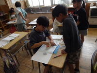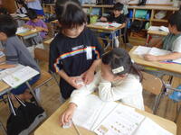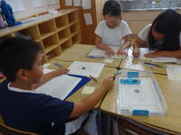 3年生が、理科でかげのでき方や日なたと日かげの違いを調べています。校庭では、温度計を使って温度を調べました。どちらの温度が高いか予想を訊くと、ほとんどの子どもが日なただと思っています。理由を訊くと「日かげはさわったら冷たいから。」「日なたは太陽の光が当たるから。」など一人一人が根拠をもっていました。