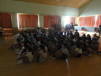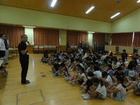 朝、校長先生のお話を静かに聞いている3年生の姿が素晴らしかったです。校長先生からは、「ぶどうの実はどこの部分が甘いでしょうか?」という問題が出され、みんな予想していました。