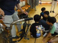 その後、各クラスに分かれて、自転車の乗り方の確認や自転車の点検を合言葉とともに、確認したり、実践したりしました。