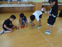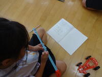 次は、車に取り付けたゴムの伸び方を変えた時の車の動き方を調べます。