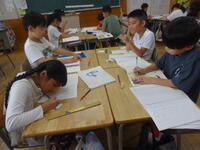 本校では、学校課題研究として、表現力を高める指導法の研究に取り組んでいます。授業を受け持つ教職員全員が、提案授業を行い、互いに参観し合い、放課後に授業研究会を行っています。