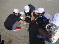 温度を測っている間には、国語で学んでいた「ちいちゃんのかげおくり」をやってみようと、友だちと一緒にかげおくりを楽しむ姿が見られました。子どもたちにとっては国語か理科かは関係なく、自然に触れながら学ぶことができました。