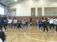 チアリーダーの方たちに教えていただき、見よう見まねで頑張って踊っています。