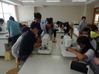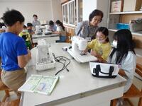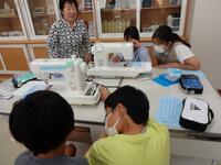 5年生が、初めてミシンを使うので、糸の通し方や布の押さえ方など基本的なことを支援していただきました。