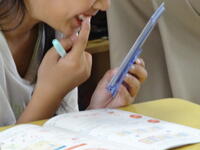 まず、4つのヒントを出すために、タブレット端末を使って、その人物の職業や得意なことなどの特徴を調べました。英語での表現を知りたいときは、担任やALTの先生に質問したり、翻訳アプリで調べたりしました。