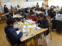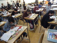 2年生が、かけ算九九のまとめとして検定を行いました。今回も保護者の方に協力をお願いし、たくさんのボランティアの方に来ていただきました。2時間目は1組、3時間目は2組、4時間目は3組が挑戦しました。(写真は1組)