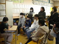 今日のロング昼休みは、今年度最後のなかよしタイムでした。まず、なかよし班ごとに集合し、1年の活動を振り返りました。一人一人が、ワークシートに自分の取組について記入しました。