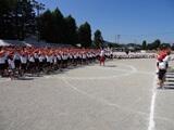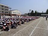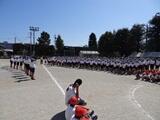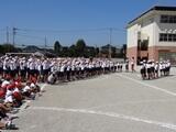 晴天の下、今日の運動会全体練習は、応援係による応援の練習でした。