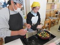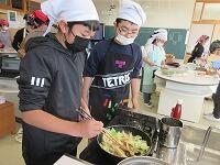 「食材を無駄なく使う了解」「旬の食材を使う花丸」「油をひかずに、ベーコンの油を利用するピース」「洗い物では水量汗・焦るに気をつける」「生ごみは水をよく切ってから笑う捨てる」など、どの班もSDGsの視点ひらめきに留意して、調理家庭科・調理をしていました。