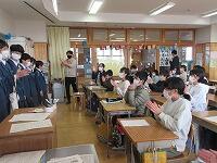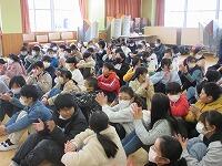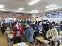 給食給食・食事終了後、下校の用意をして中学校に向けて出発急ぎしました。それぞれの中学校で、お家の方と合流ピース、先生方や生徒会のみなさんグループによる『中学校生活』の説明お知らせを聞きました。