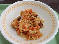 も、児童に人気があります。今日の給食は「コッペパン・チョコクリーム・牛乳・スパゲティナポリタン