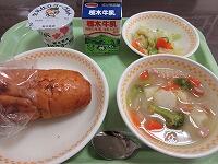 今日の給食は「キャラメルあげパン・牛乳・フレンチサラダ・ポトフ・栃木県産