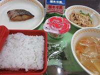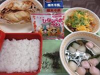 今日の給食は「ごはん・牛乳・さわらの西京焼き・たけのこごはんの具