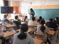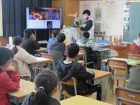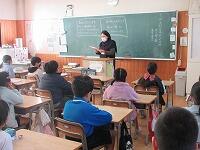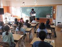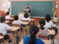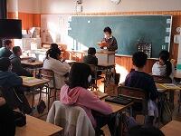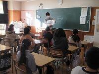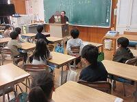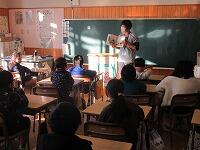 5年生は1・2組一緒に『紙芝居』での読み聞かせ。終わった後には『手品