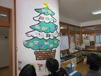 になっています。図書室の柱には大きなクリスマスツリー、児童が見上げている飾り
