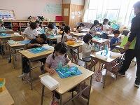 2年生は図工美術・図工『まどのある学校たてもの』の学習鉛筆で、カッターナイフ!を使って工作用紙を切る活動ピースを行いました。今日のめあて星は「まどの形を工夫して了解切ろう。」で、カッターを安全に使って花丸切ることができます。窓の形も、四角・三角・カーブのある形、、、といろいろ工夫ひらめきしています。窓を開けると、中には、人物グループやかわいい動物動物が姿を現したり、きれいなお花キラキラやおいしそうなお食事給食・食事が見えたり、恐竜驚く・ビックリがこちらを見ていたり、、、とても楽しそうに笑う取り組んでいます。