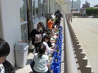 2年生星のみなさん、は生活科キラキラで『やさいを育てよう笑う』の学習鉛筆が始まりました。今日は3クラスとも、自分が選んで学校に持って来た「やさいの苗キラキラ」を、鉢に植えます。土を入れて、苗キラキラをそ~っと鉢の中央に置いて、残りの土をかけましょう、、、