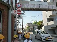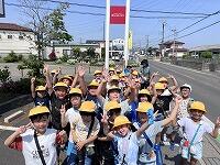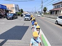 一列に並んで了解、車車に気をつけて歩きましょう。「お店笑うがあるね~。」「ここは何だろう、、、?!」「大きな看板だな~。」